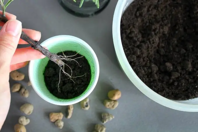 Once your rose cutting shows new leaves or visible roots: