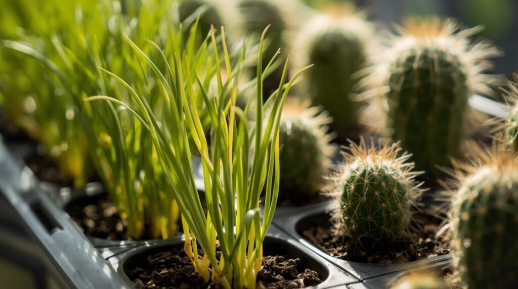 Once seedlings develop multiple segments, they can be transplanted into larger containers with proper spacing.