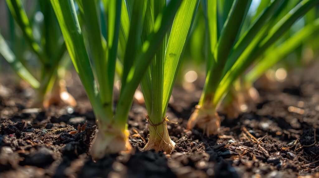 Onions grow well in shallow containers or raised beds. Proper spacing allows bulbs to develop fully without competition.