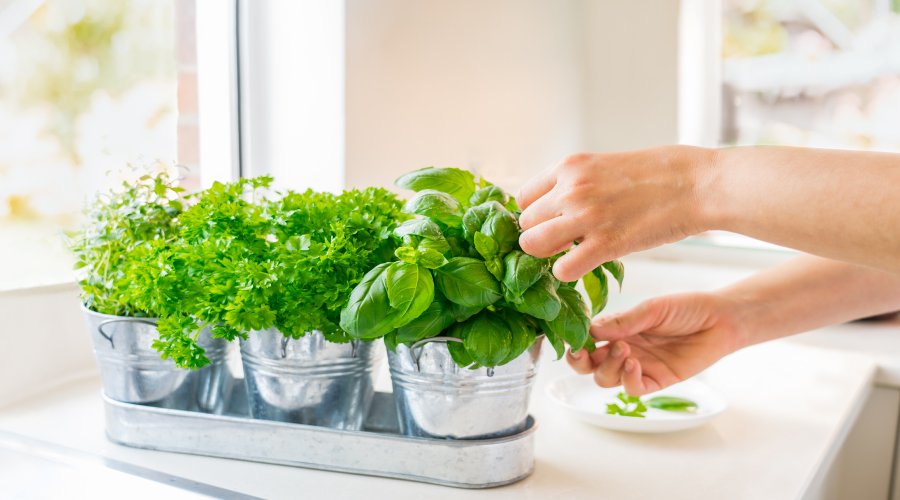 • Herbs, microgreens, and small leafy vegetables thrive indoors.
